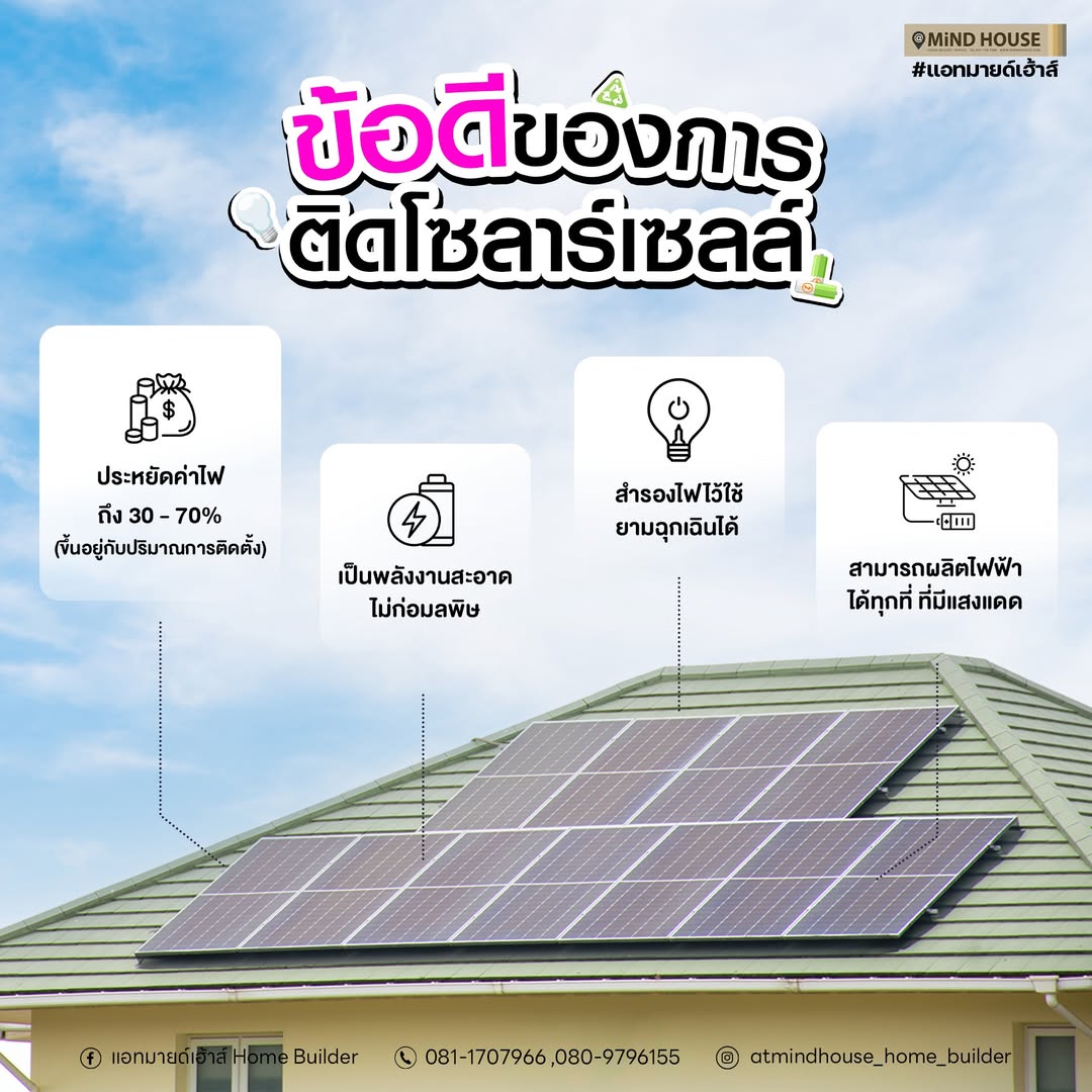 แผงโซลาร์เซลล์ ประหยัดไฟสุดคุ้มแถมรักษ์โลกไปอีกขั้น แอทมายด์เฮ้าส์ พร้อมออกแบบ-ปรับโครงสร้างหลังคาให้รองรับแผงโซลาร์เซลล์ได้